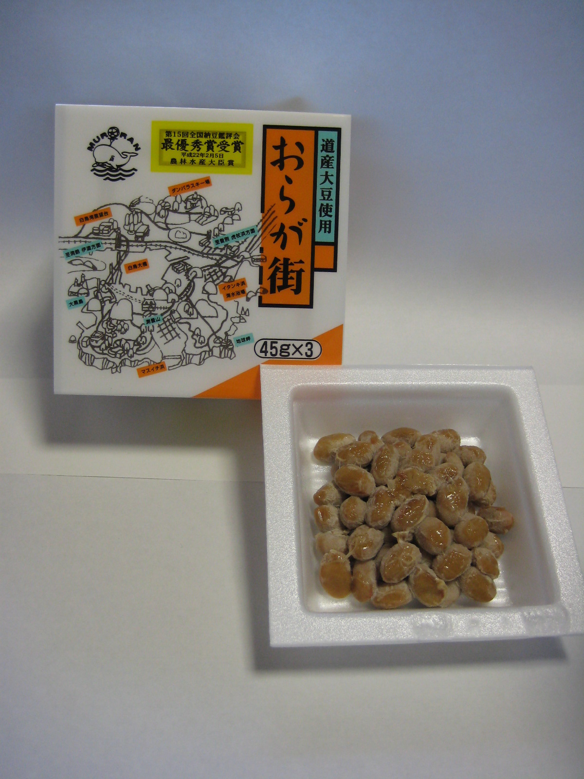 | 内藤食品のオススメ商品♪♪ ●道産大豆100%使用の「おらが街」納豆● 北海道の自然で育った大豆を使用した納豆は すばらしい賞をいただきました。 第8回全国納豆鑑評会(平成15年2月14日) 農林水産省総合食料局長賞 大粒・中粒部門 優秀賞 第2回北海道納豆品質鑑評会(平成16年5月29日) 北海道納豆工業組合 大粒・中粒部門 最優秀賞 第10回全国納豆鑑評会(平成17年2月18日) 全国農業協同組合連合会長賞 大粒・中粒部門 優秀賞 第12回全国納豆鑑評会(平成19年2月23日) 厚生労働省 食品安全部長賞 大粒・中粒部門 優秀賞 第13回全国納豆鑑評会(平成20年2月15日) 全国農業協同組合連合会長賞 大粒・中粒部門 優秀賞 第15回全国納豆鑑評会(平成22年2月5日) 農林水産大臣賞 最優秀賞 第16回全国納豆鑑評会(平成23年2月18日) 全国農業協同組合連合会長賞 大粒・中粒部門 優秀賞 |